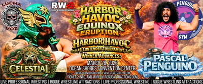 • Celestial vs Pascal Penguino – #1 Contender Tournament Tie Breaker – Only one advances closer to the RWA Harbor Havoc Championship.