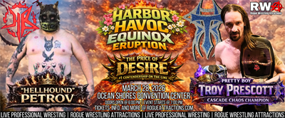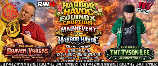 Get ready, Grays Harbor! Rogue Wrestling Attractions is bringing an unforgettable night of live professional wrestling to Ocean Shores with Harbor Havoc – Equinox Eruption. This high-energy event is packed with heart-pounding matches, championship action, and career-defining moments you won’t want to miss.