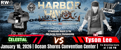 Doors open at 6:00 PM, with live professional wrestling beginning at 7:00 PM. Whether you’re a longtime wrestling fan or experiencing live pro wrestling for the first time, Harbor Havoc – New Year’s Retribution promises an unforgettable night of action, emotion, and championship stakes in Ocean Shores.