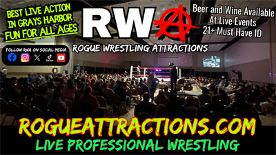 Rogue Wrestling Attractions, LLC is a professional wrestling promotion based in Aberdeen, Washington, producing high-impact live events across the state. Our main shows — Harbor Havoc, Cascade Chaos, and RWA: Proving Grounds — feature a mix of top independent talent and up-and-coming performers; bringing action-packed entertainment.